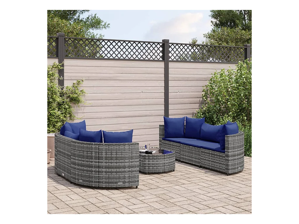 Set Divano da Giardino 8 pz con Cuscini Grigio in Polyrattan