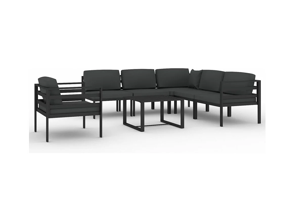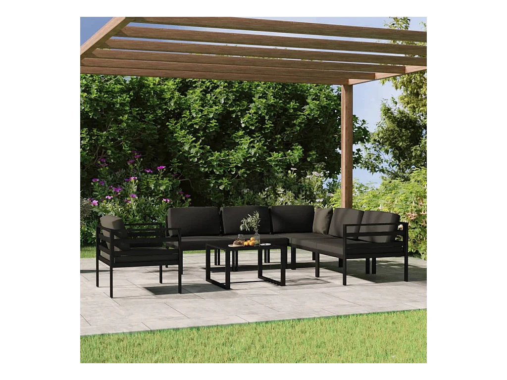 Set Divani da Giardino 8 pz con Cuscini in Alluminio Antracite