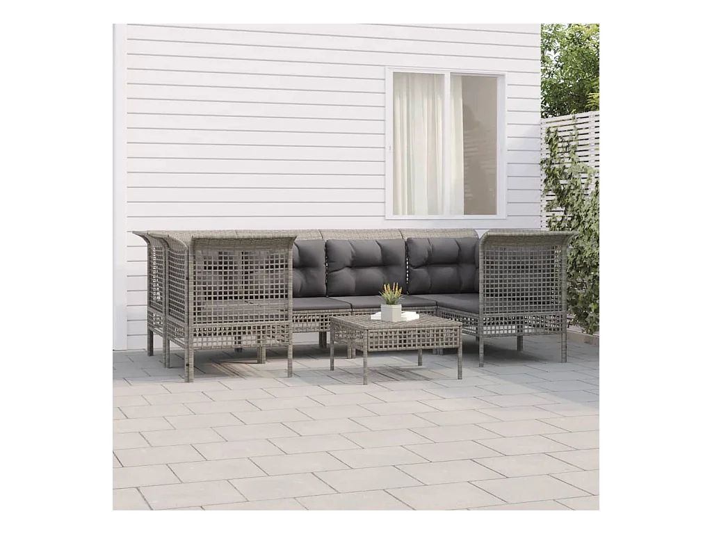 Set Divani da Giardino 7 pz con Cuscini in Polyrattan Grigio
