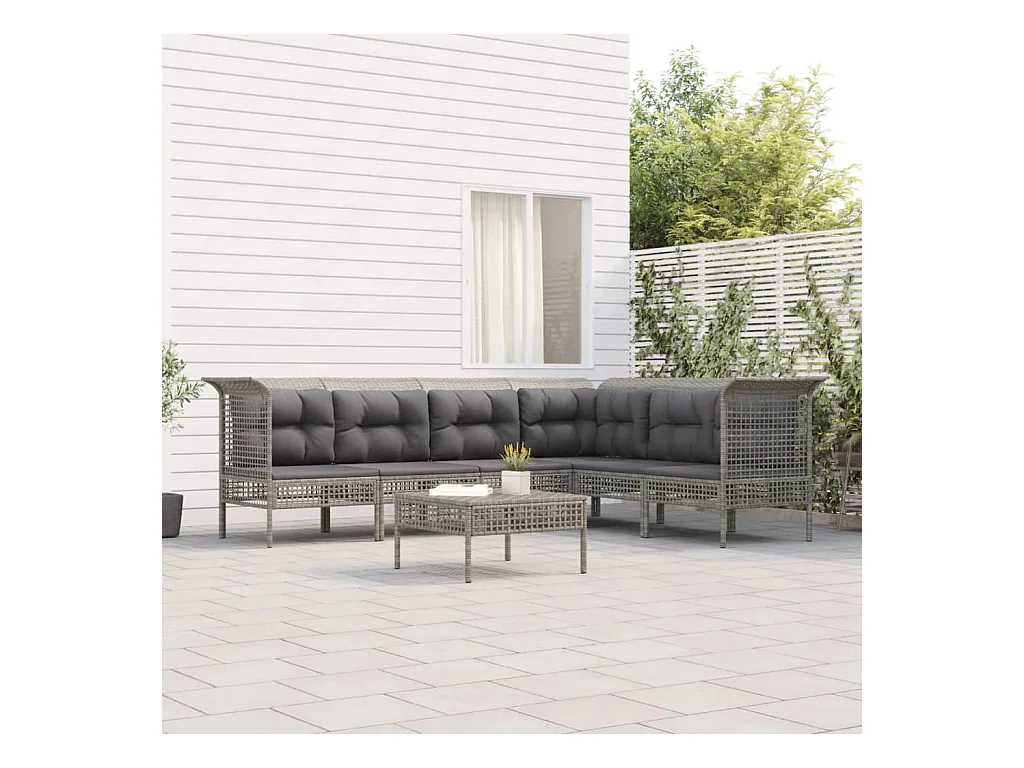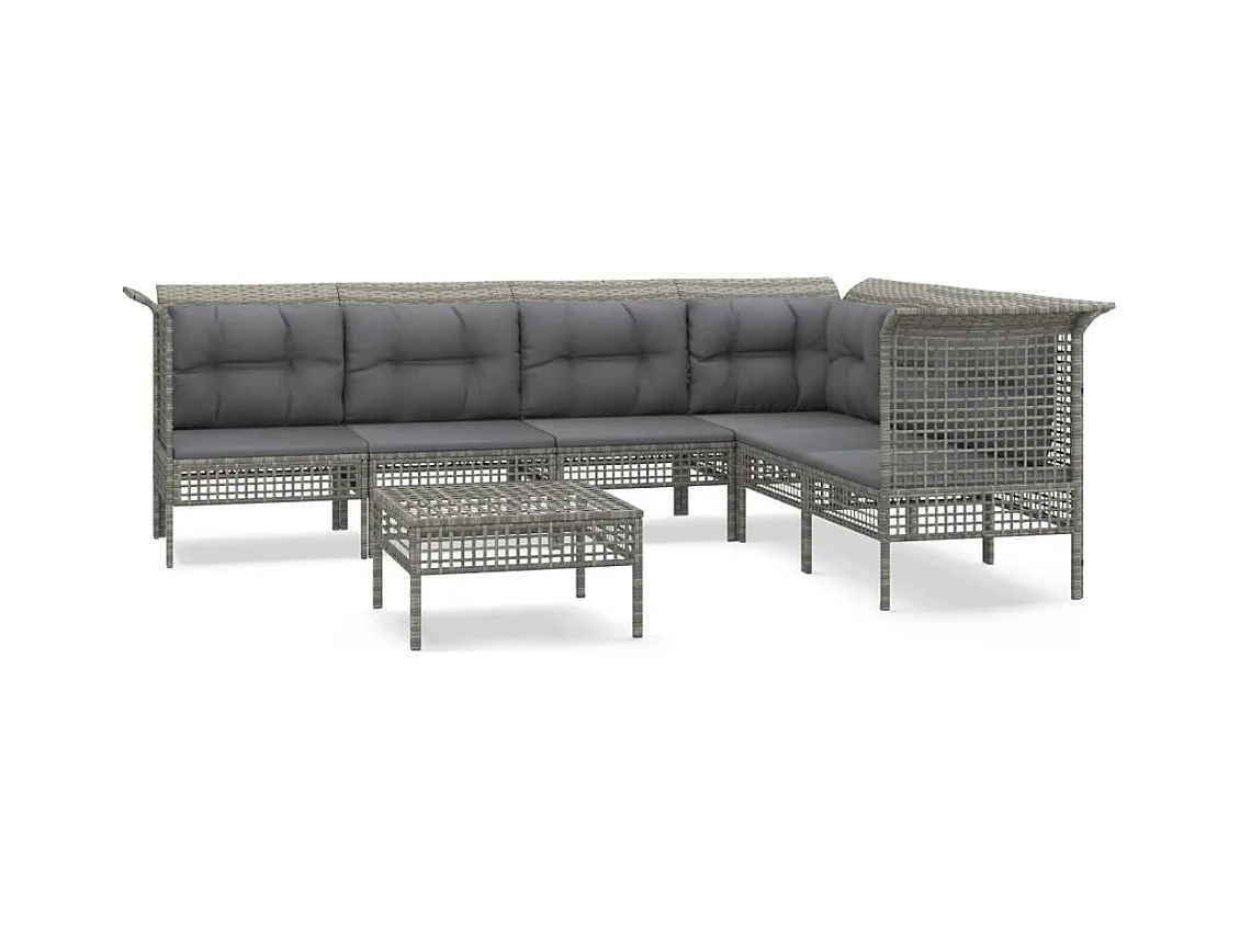 Set Divani da Giardino 7 pz con Cuscini in Polyrattan Grigio