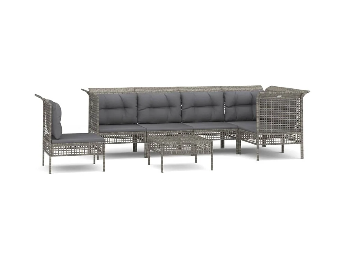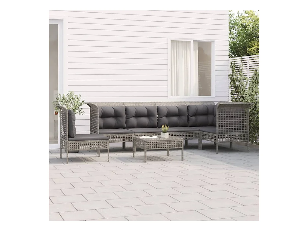 Set Divani da Giardino 7 pz con Cuscini in Polyrattan Grigio