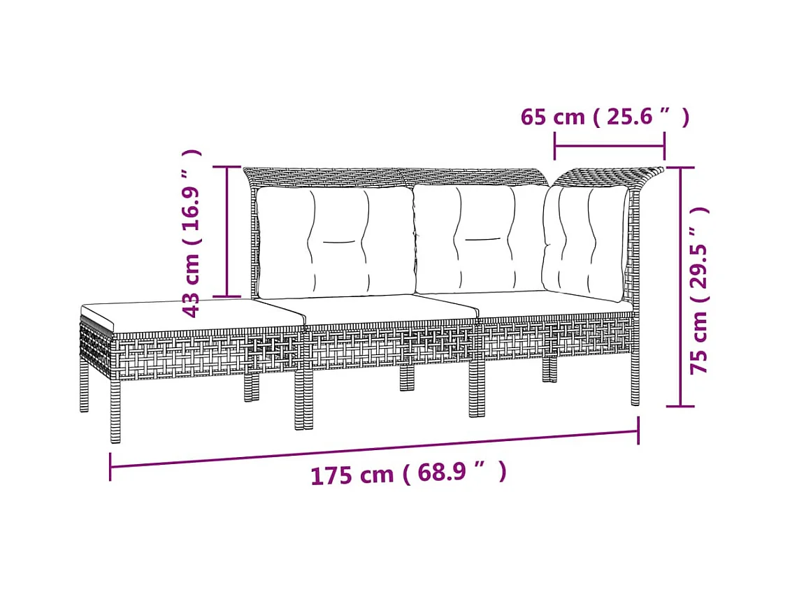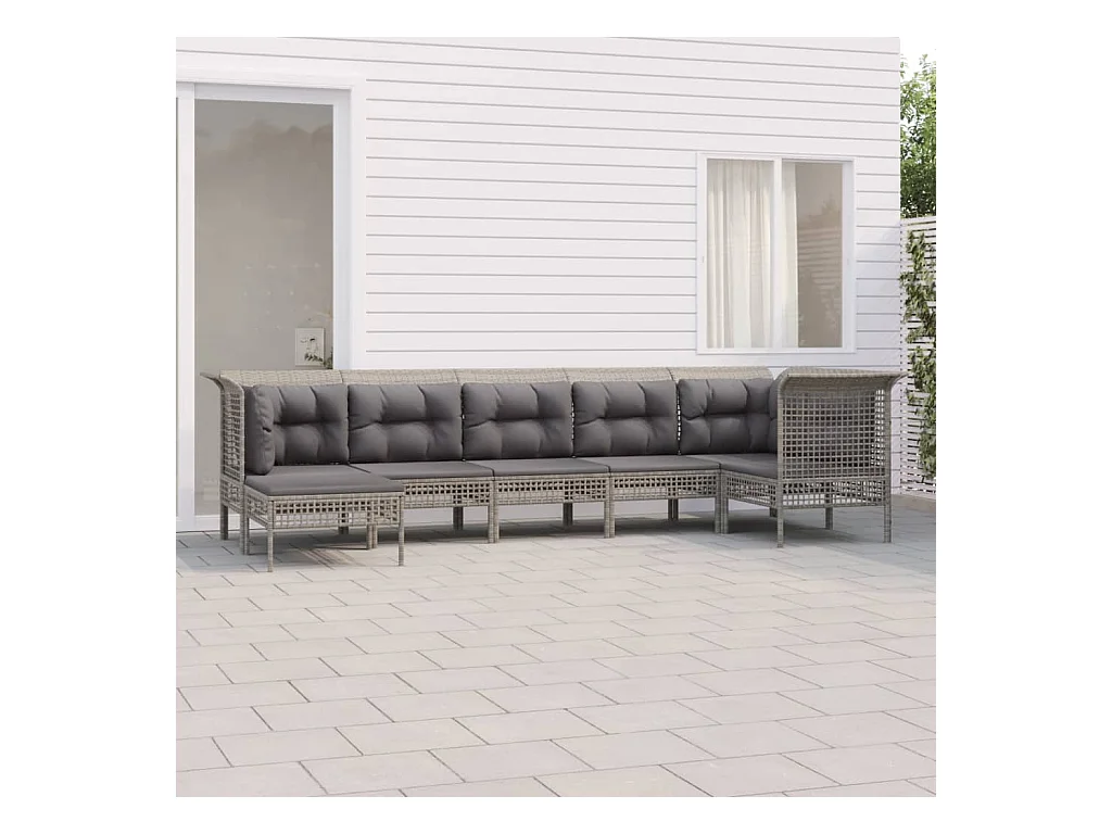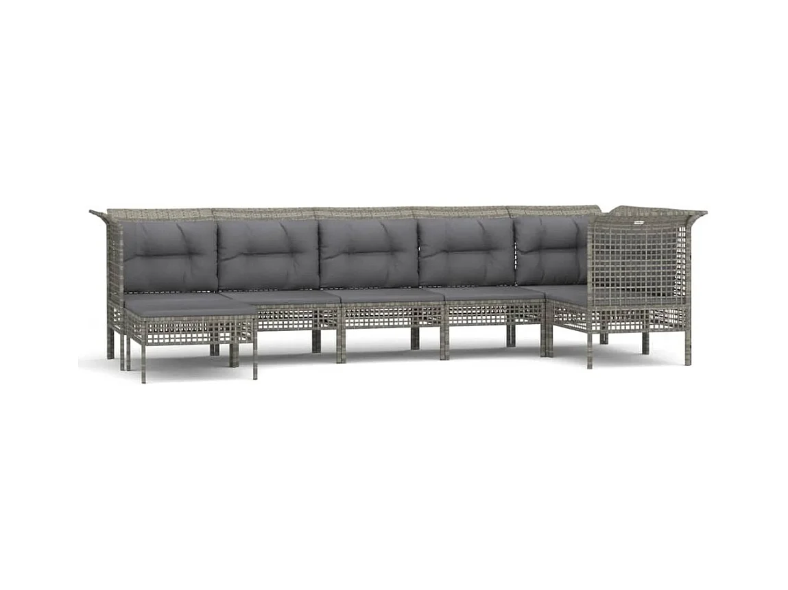 Set Divani da Giardino 7 pz con Cuscini in Polyrattan Grigio
