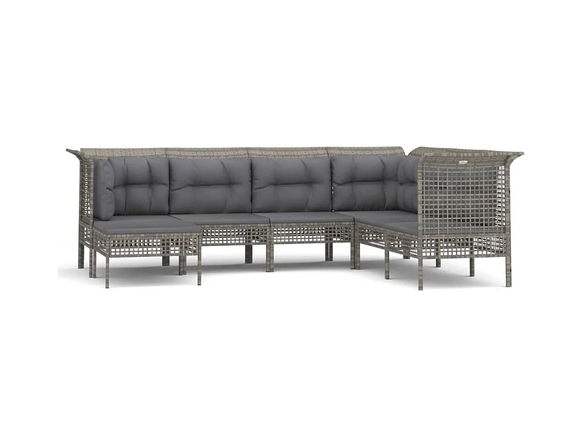Set Divani da Giardino 7 pz con Cuscini in Polyrattan Grigio