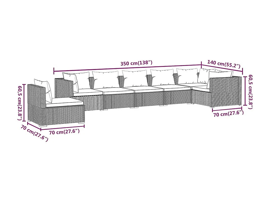 Set Divani da Giardino 7 pz con Cuscini in Polyrattan Marrone