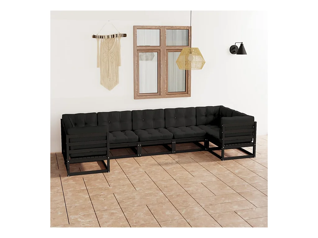 Set Divani da Giardino 7 pz con Cuscini Massello di Pino Nero