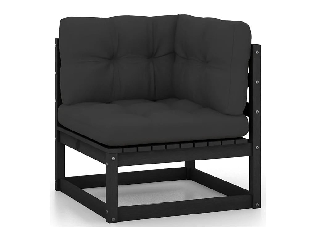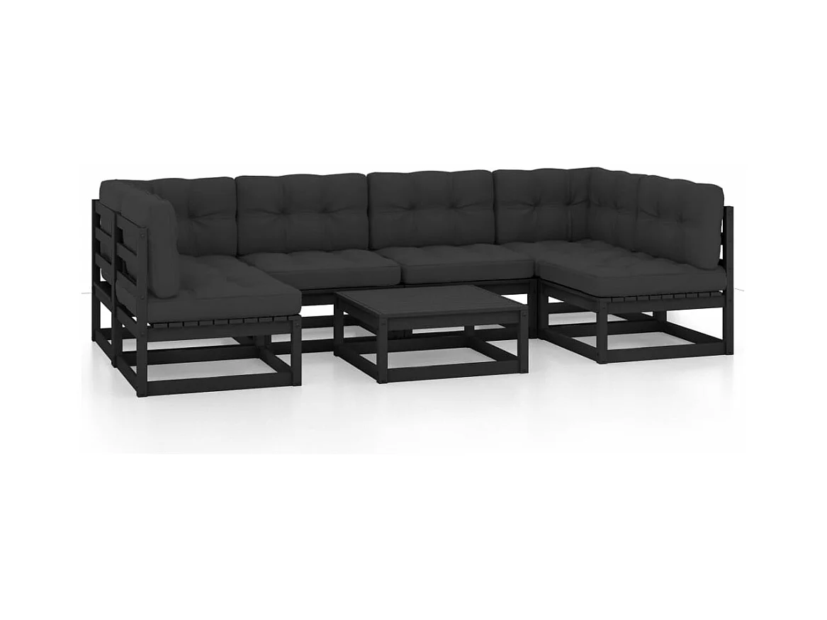 Set Divani da Giardino 7 pz con Cuscini in Pino Massello Nero