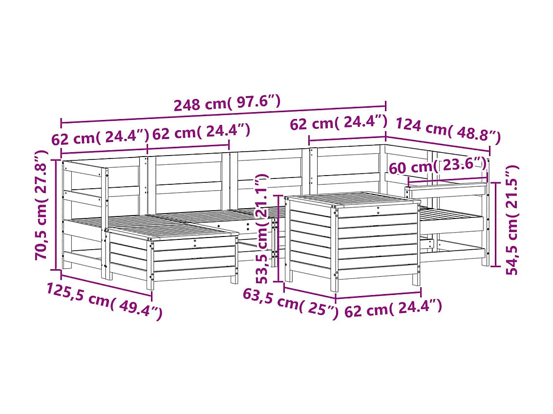 Set Divani da Giardino 7 pz in Legno Massello Abete Douglas