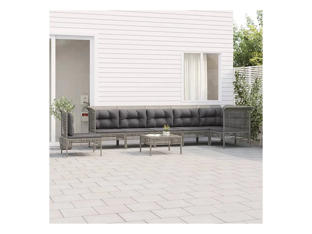 Set Divani da Giardino 8 pz con Cuscini in Polyrattan Grigio