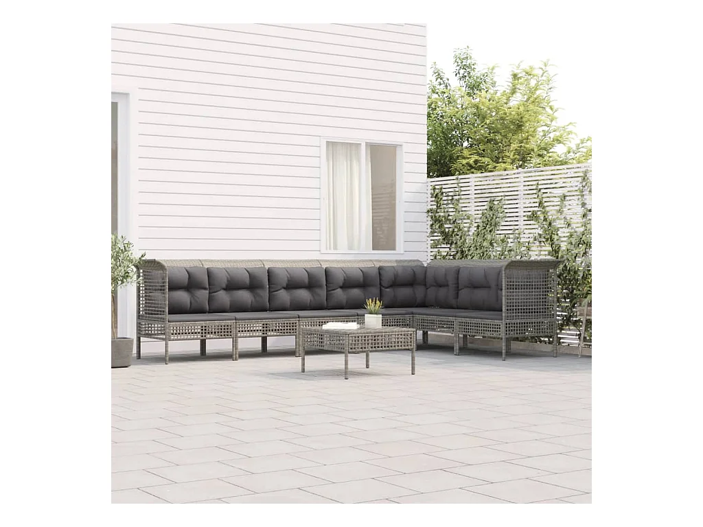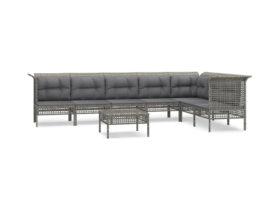 Set Divani da Giardino 8 pz con Cuscini in Polyrattan Grigio