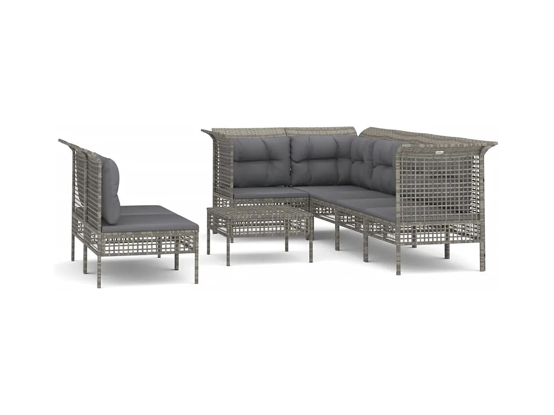 Set Divani da Giardino 8 pz con Cuscini in Polyrattan Grigio