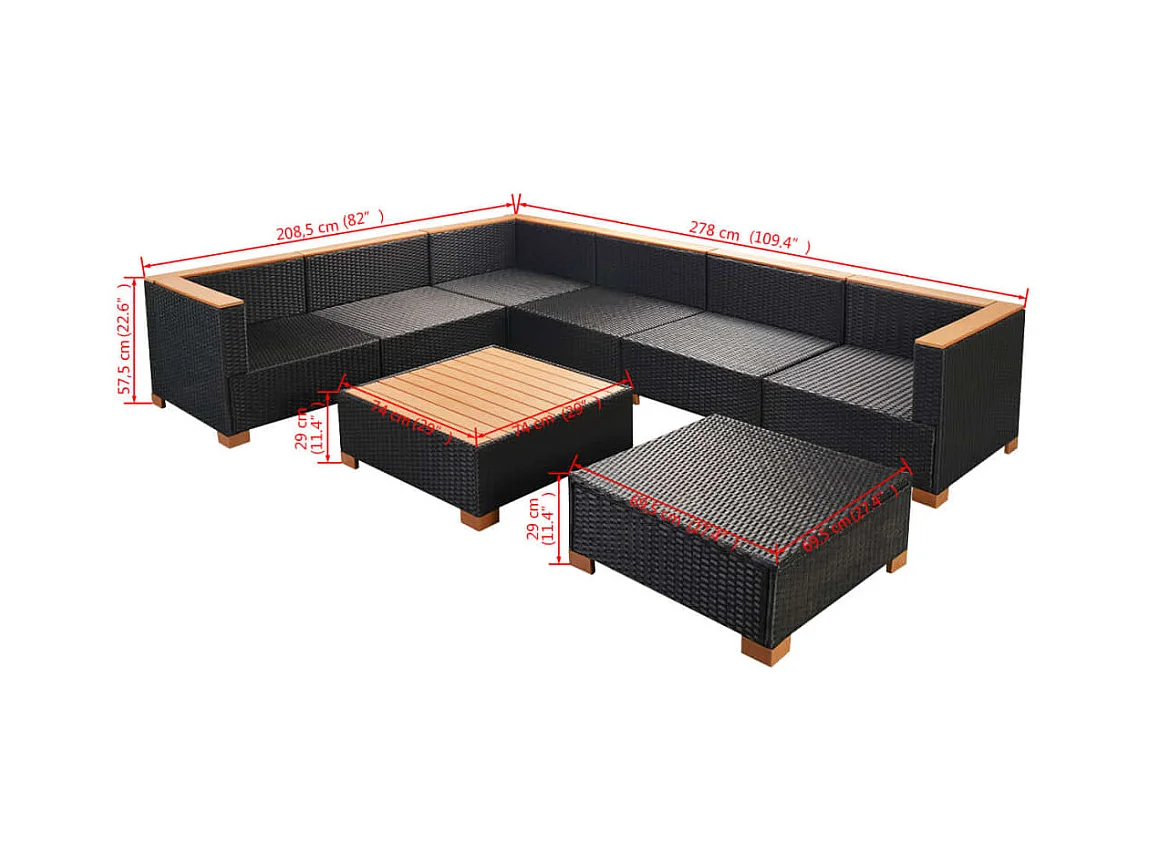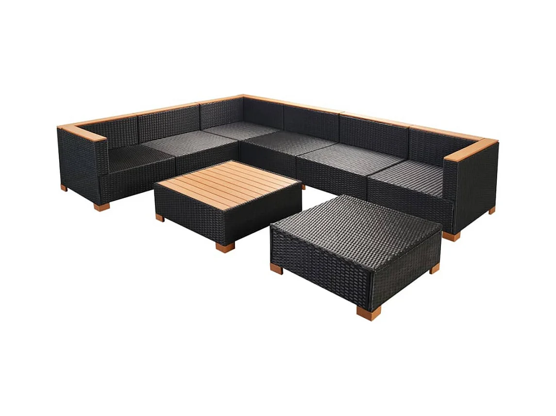 Set Divani da Giardino con Cuscini 8 pz Nero Polyrattan Acacia