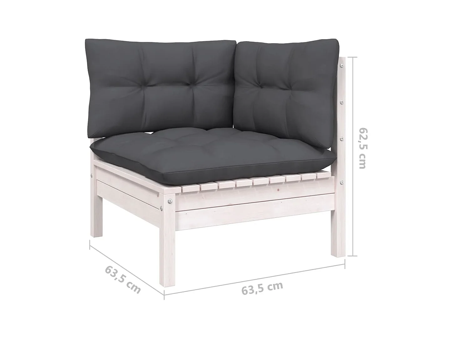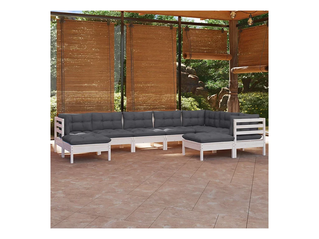Set Divani da Giardino 7 pz con Cuscini Bianchi Legno di Pino
