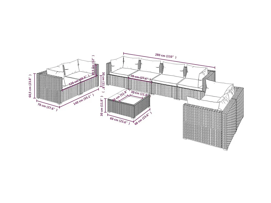 Mobili da giardino mobili da esterno Set di mobili da 8 pezzi con cuscini in resina intrecciata nera 02_0017736