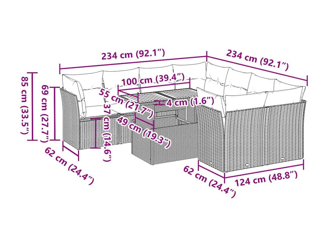 Set Divani da Giardino 9 pz con Cuscini Nero Polyrattan Acacia