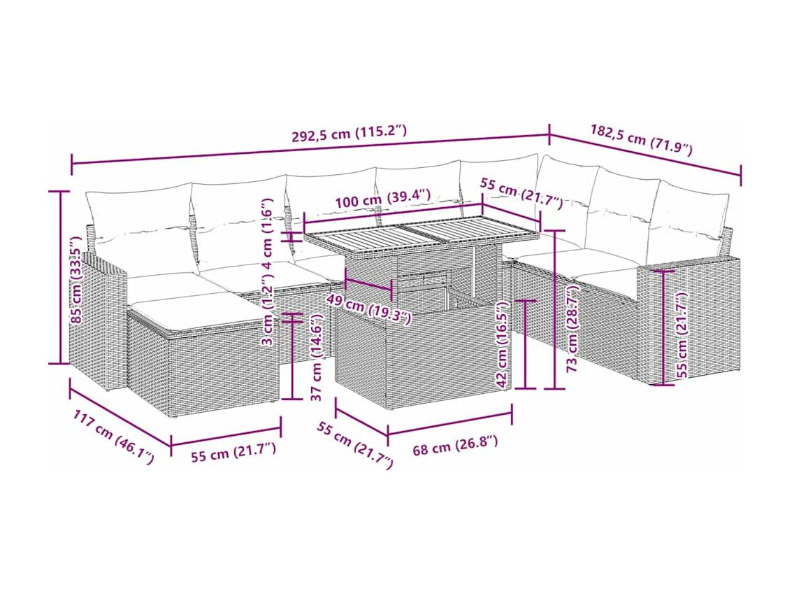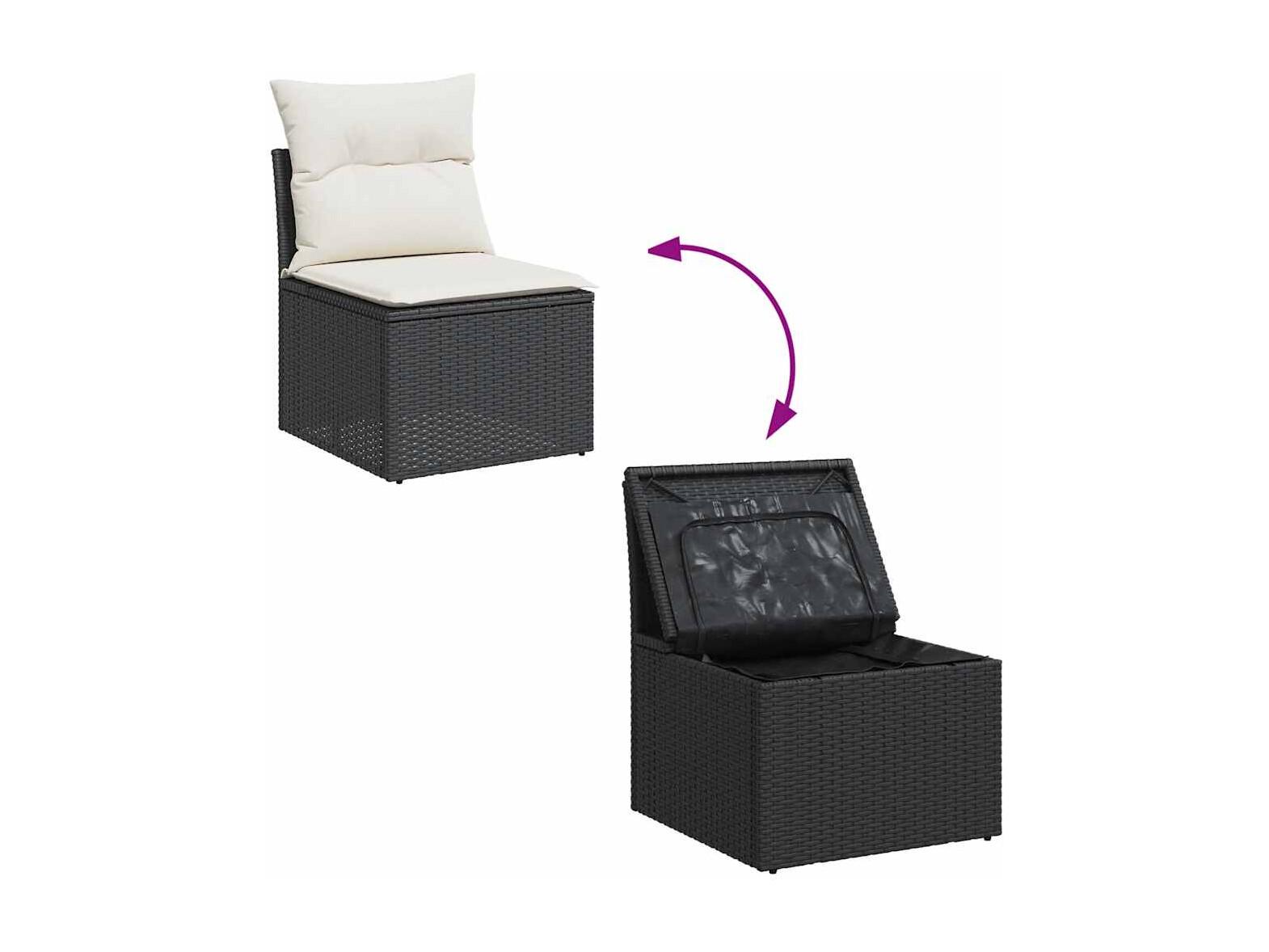 Set Divani da Giardino 9 pz con Cuscini Nero in Polyrattan