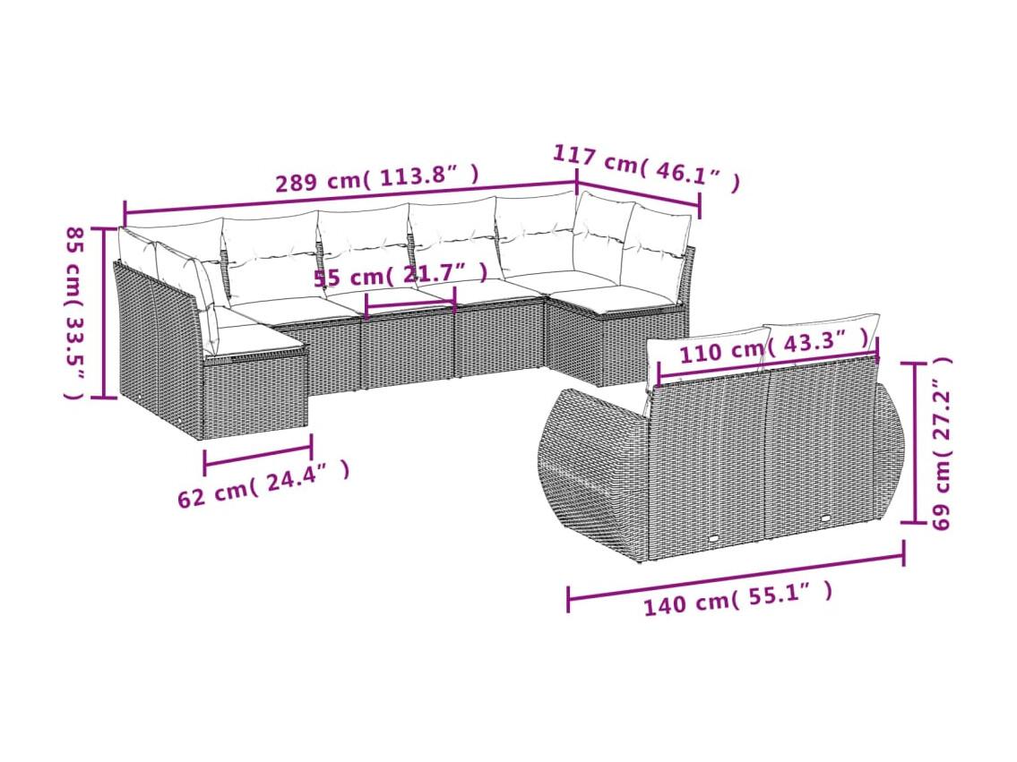 Mobili da giardino da 9 pezzi con cuscini in resina intrecciata nera