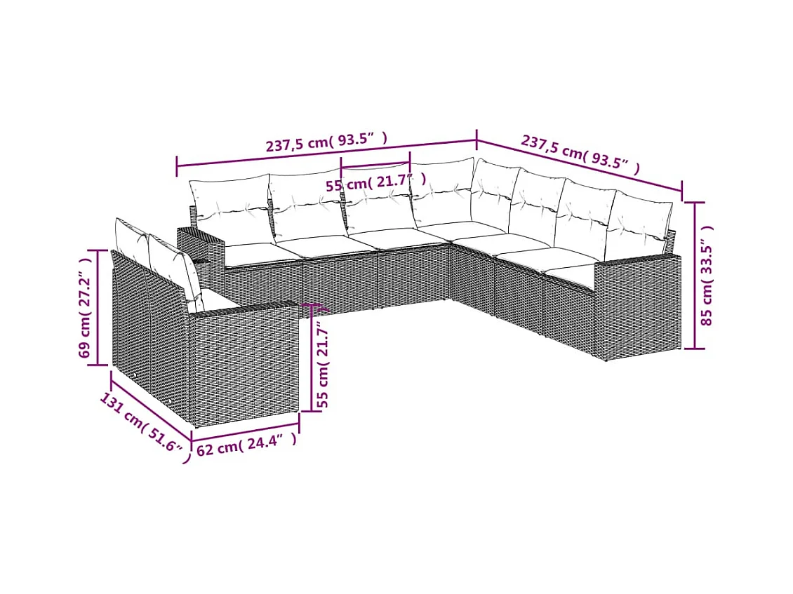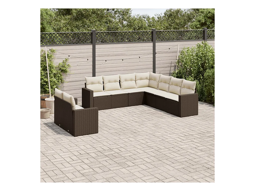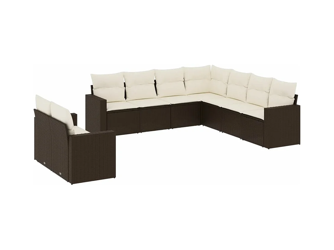 Mobile da giardino con cuscini 9 pz in resina intrecciata marrone