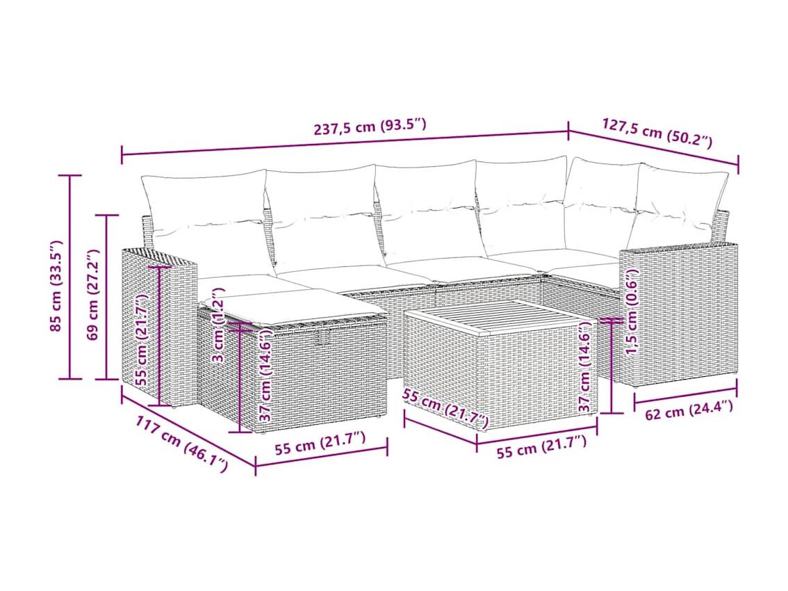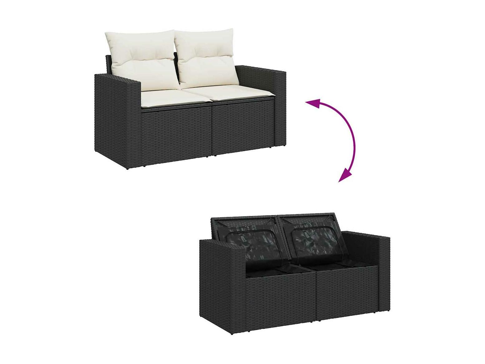 Set Divani da Giardino con Cuscini 7pz Nero Polyrattan