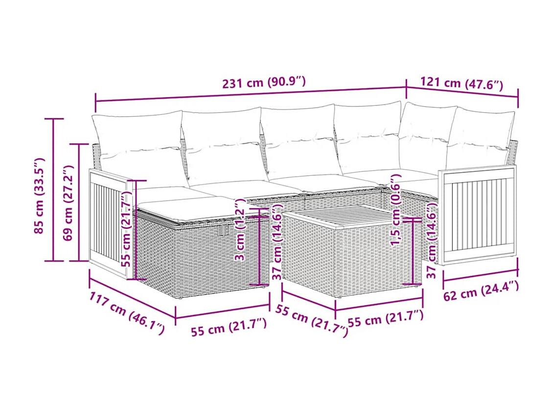 Set Divani da Giardino con Cuscini 7pz Nero Polyrattan