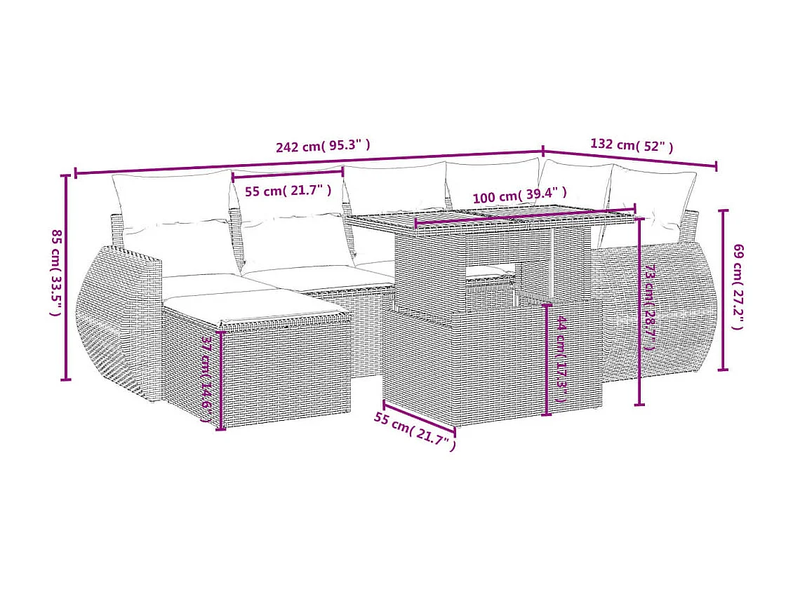 Set Divani da Giardino con Cuscini 7pz Nero Polyrattan