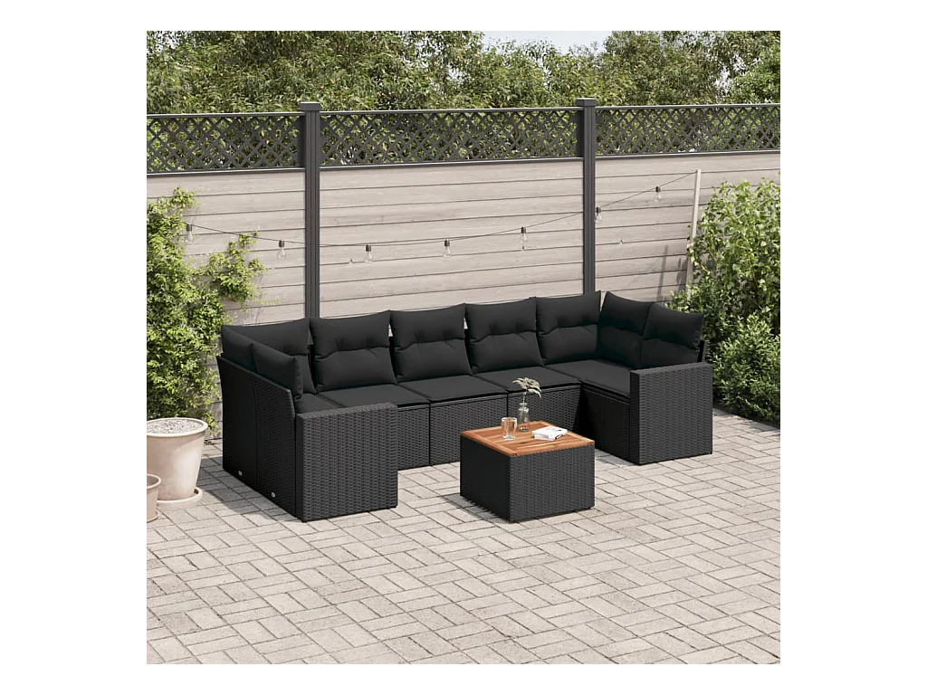 Set Divani da Giardino con Cuscini 8 pz Nero in Polyrattan