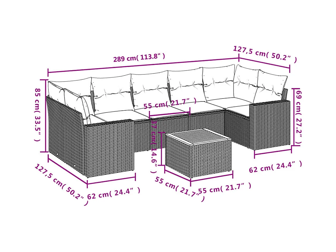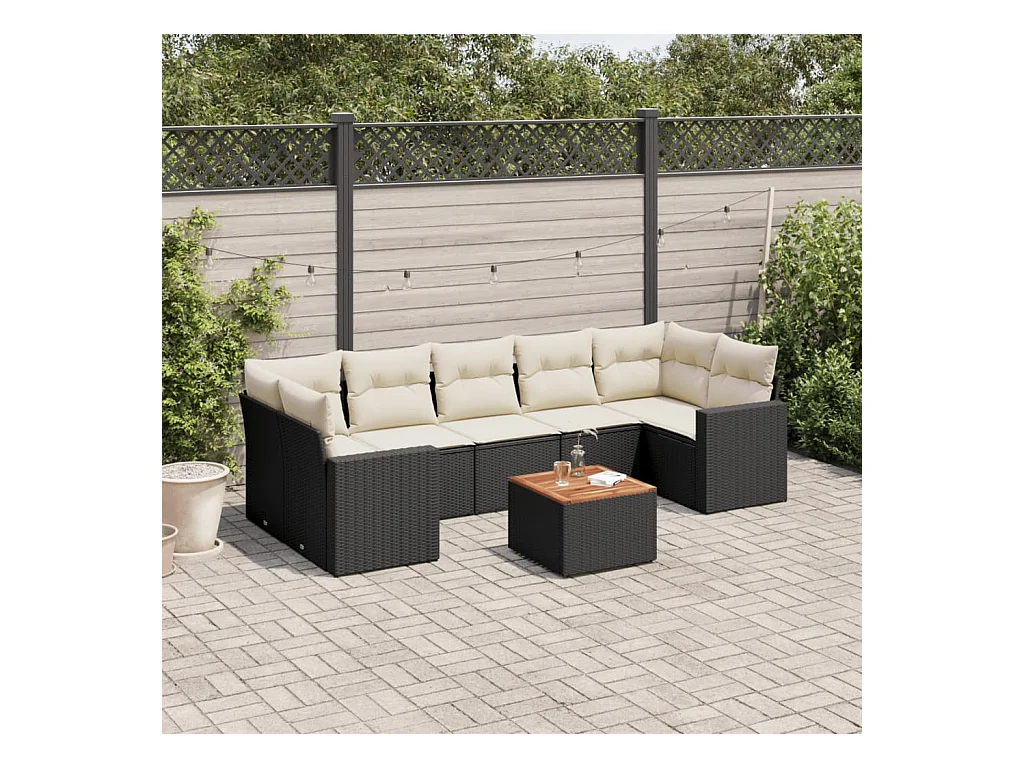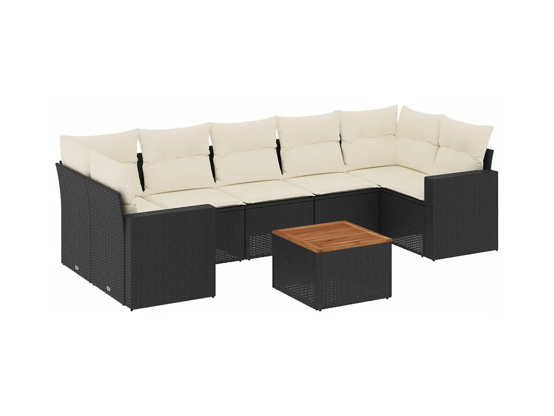Set Divani da Giardino con Cuscini 8 pz Nero in Polyrattan