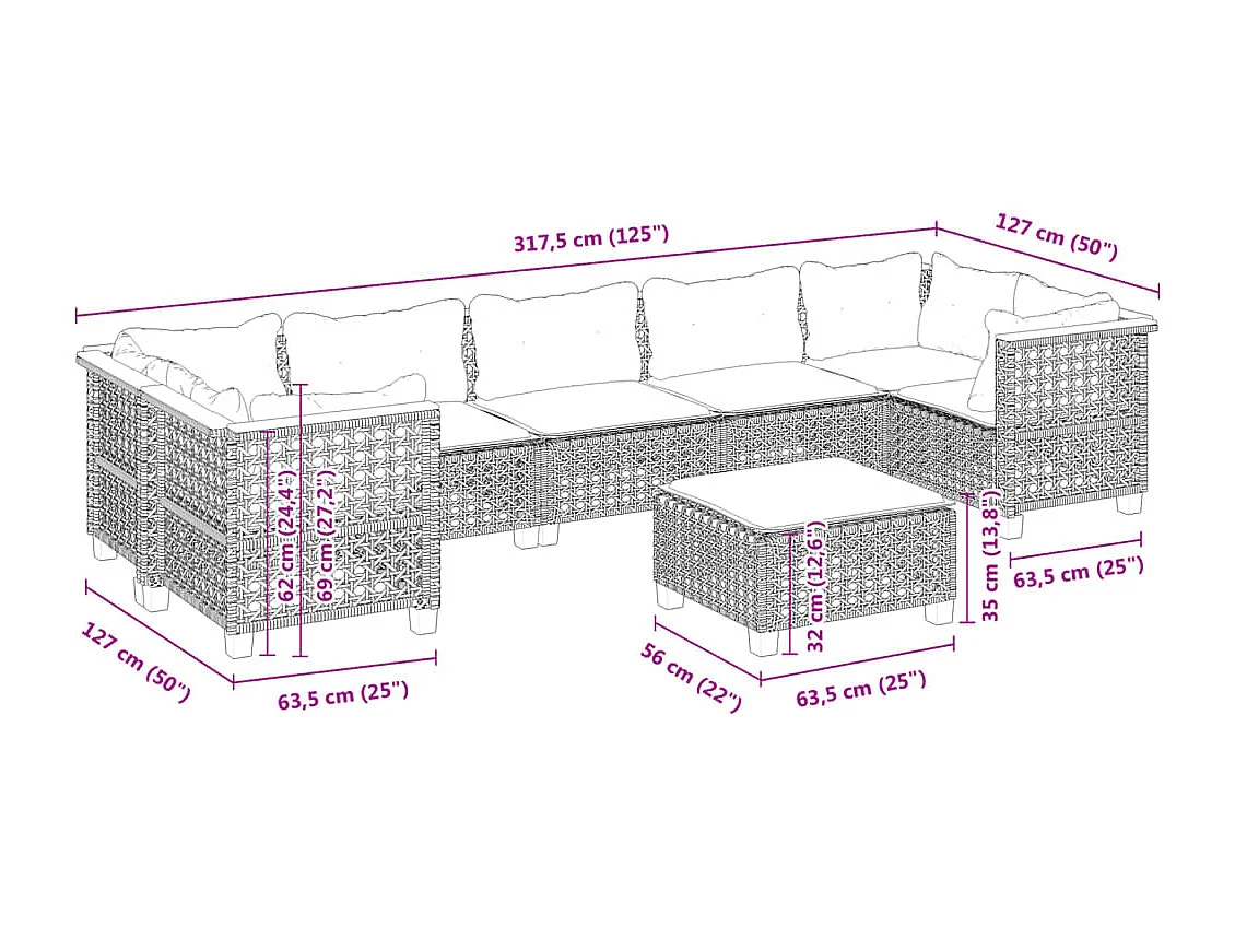 Set Divani da Giardino con Cuscini 8 pz Nero in Polyrattan