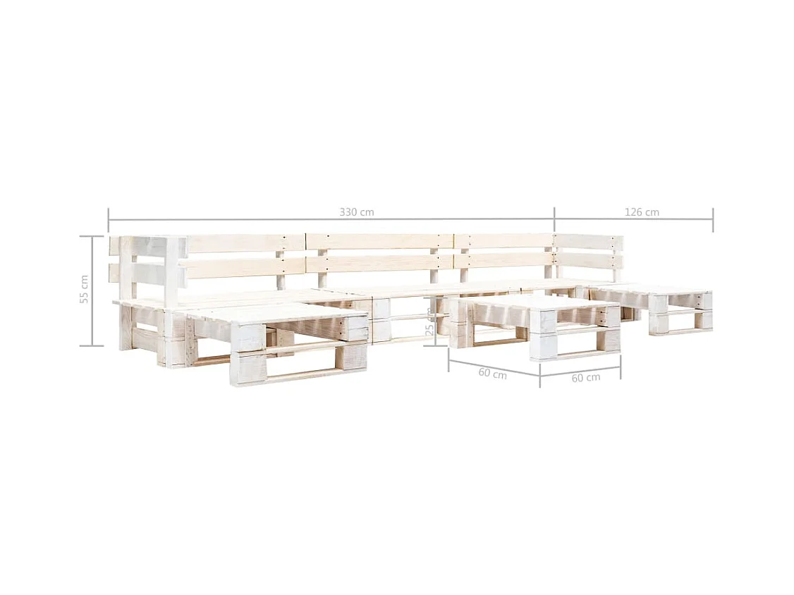 Set Divani da Giardino su Pallet 6 pz in Legno Bianco