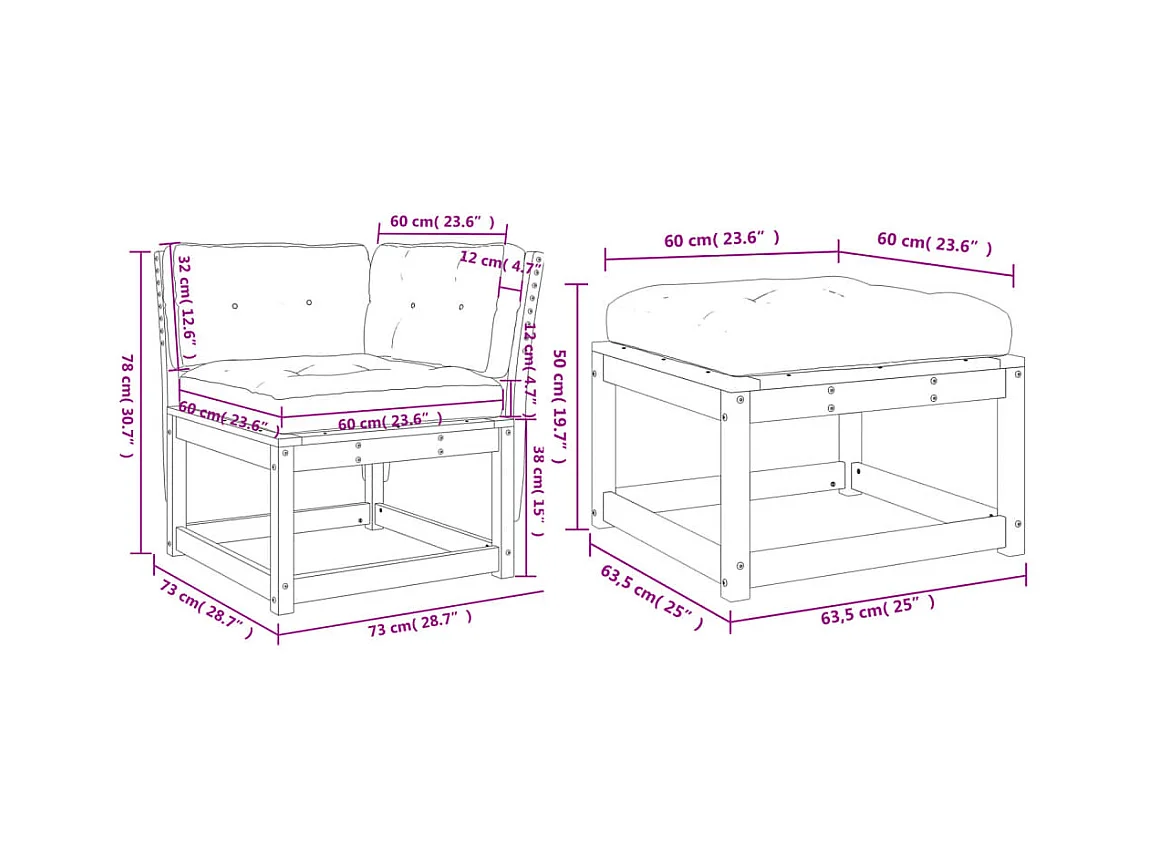 Set Salotto da Giardino 8 pz in Legno Massello di Pino Bianco