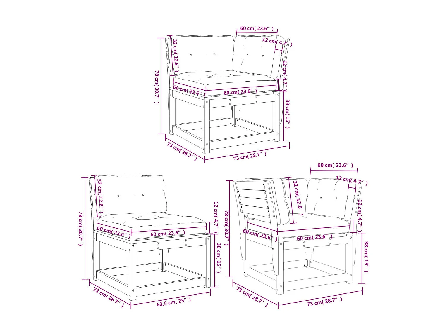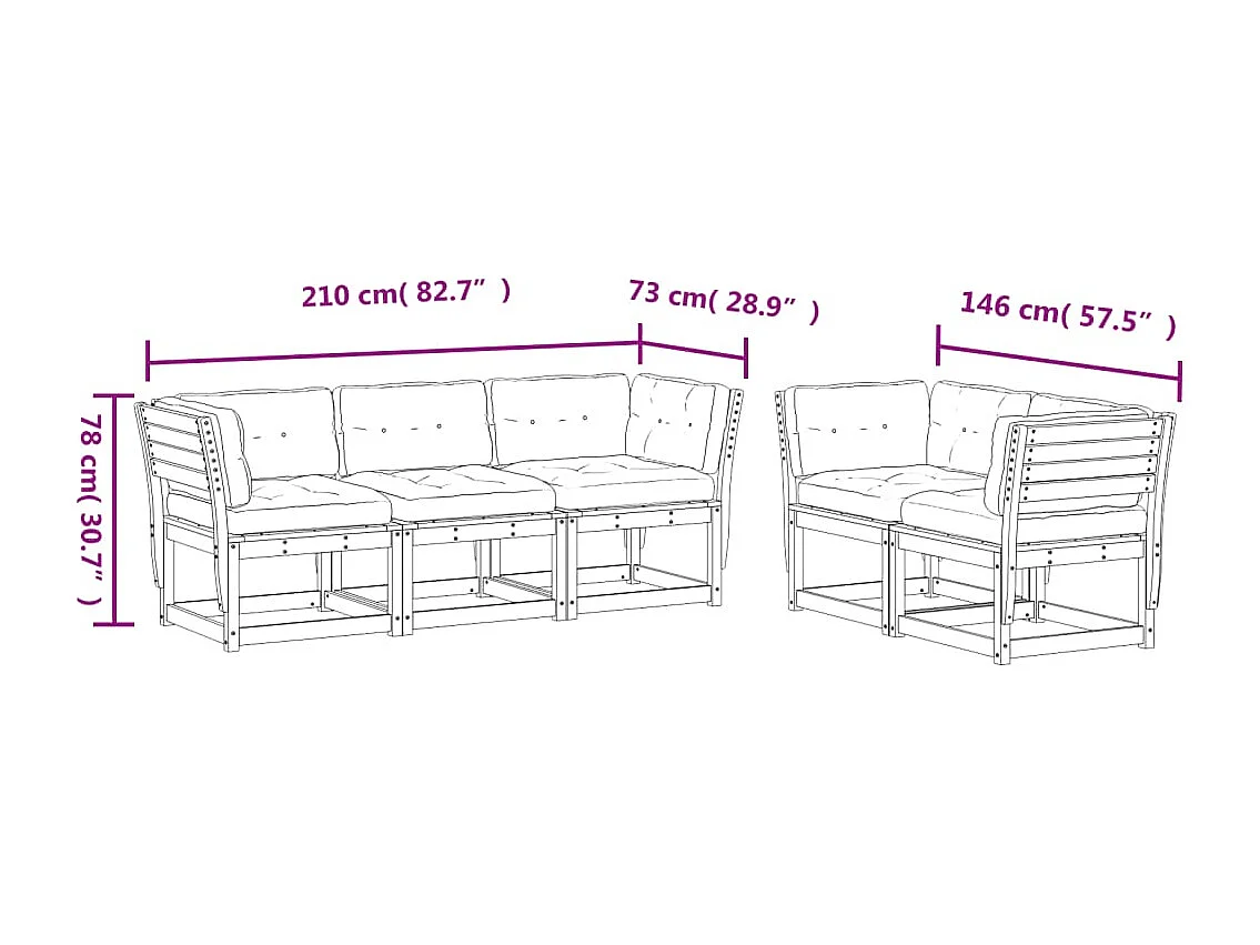 Set Divani Giardino 6 pz con Cuscini in Legno Massello di Pino