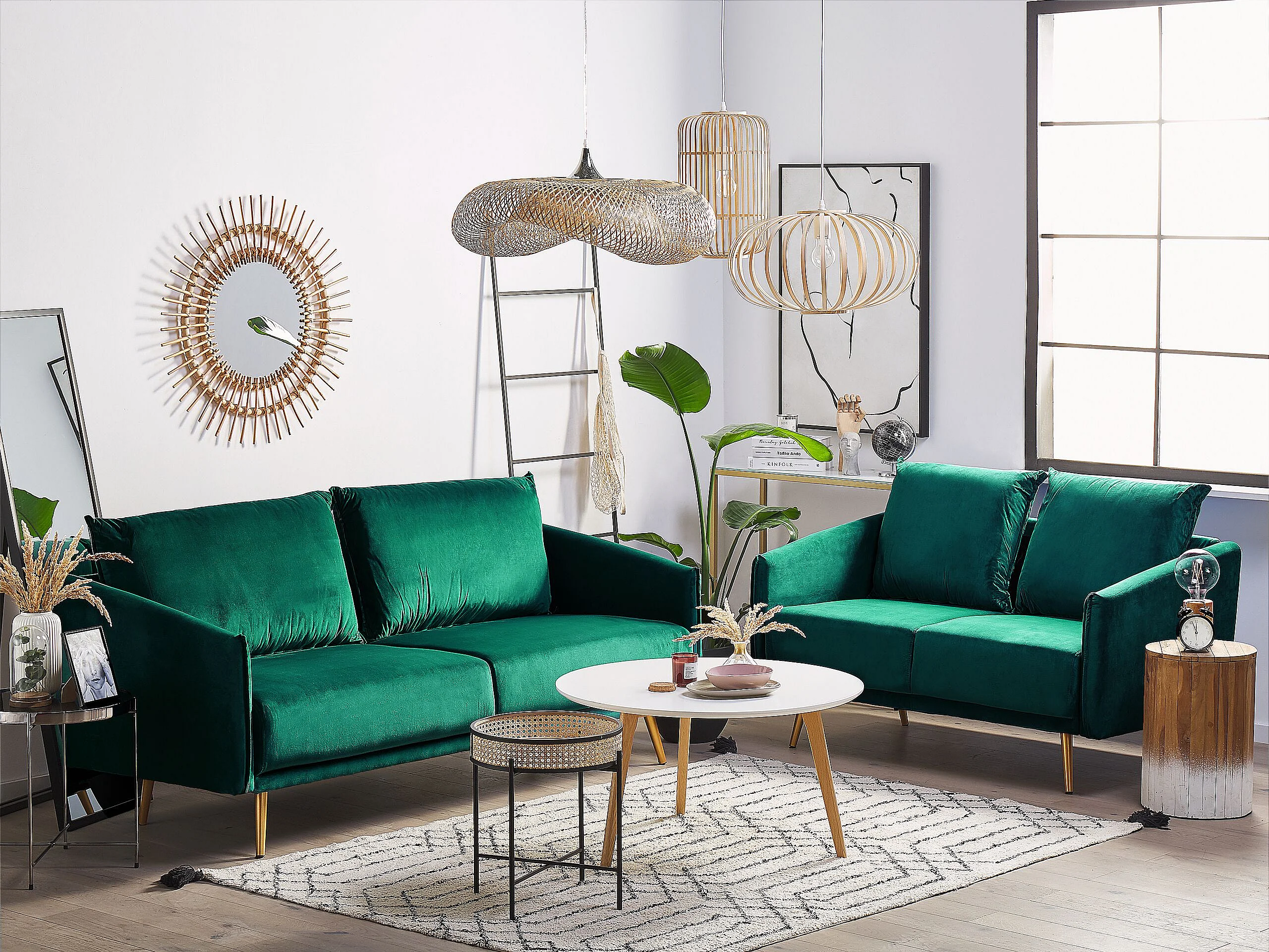 Set da salotto MAURA Velluto Verde smeraldo 5 posti