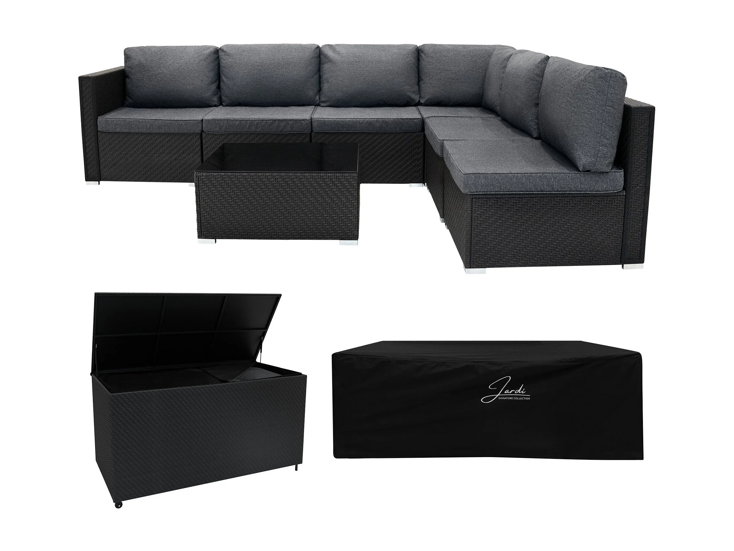 Set Divani Rattan 7 Pezzi con Tavolino & Baule 700L da Giardino - Nero