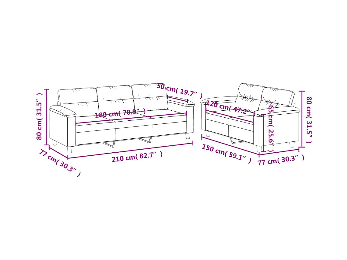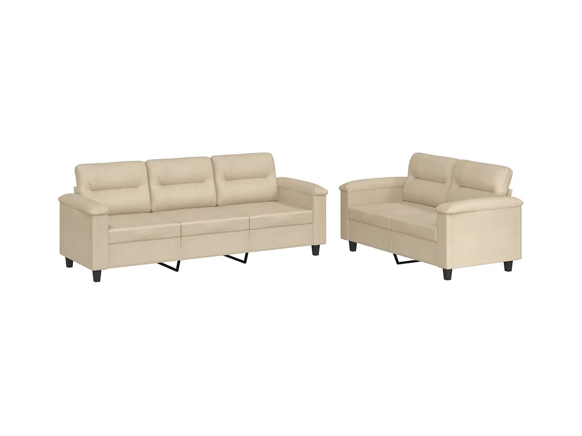 Set divano 2 pezzi con cuscini color crema in tessuto microfibra