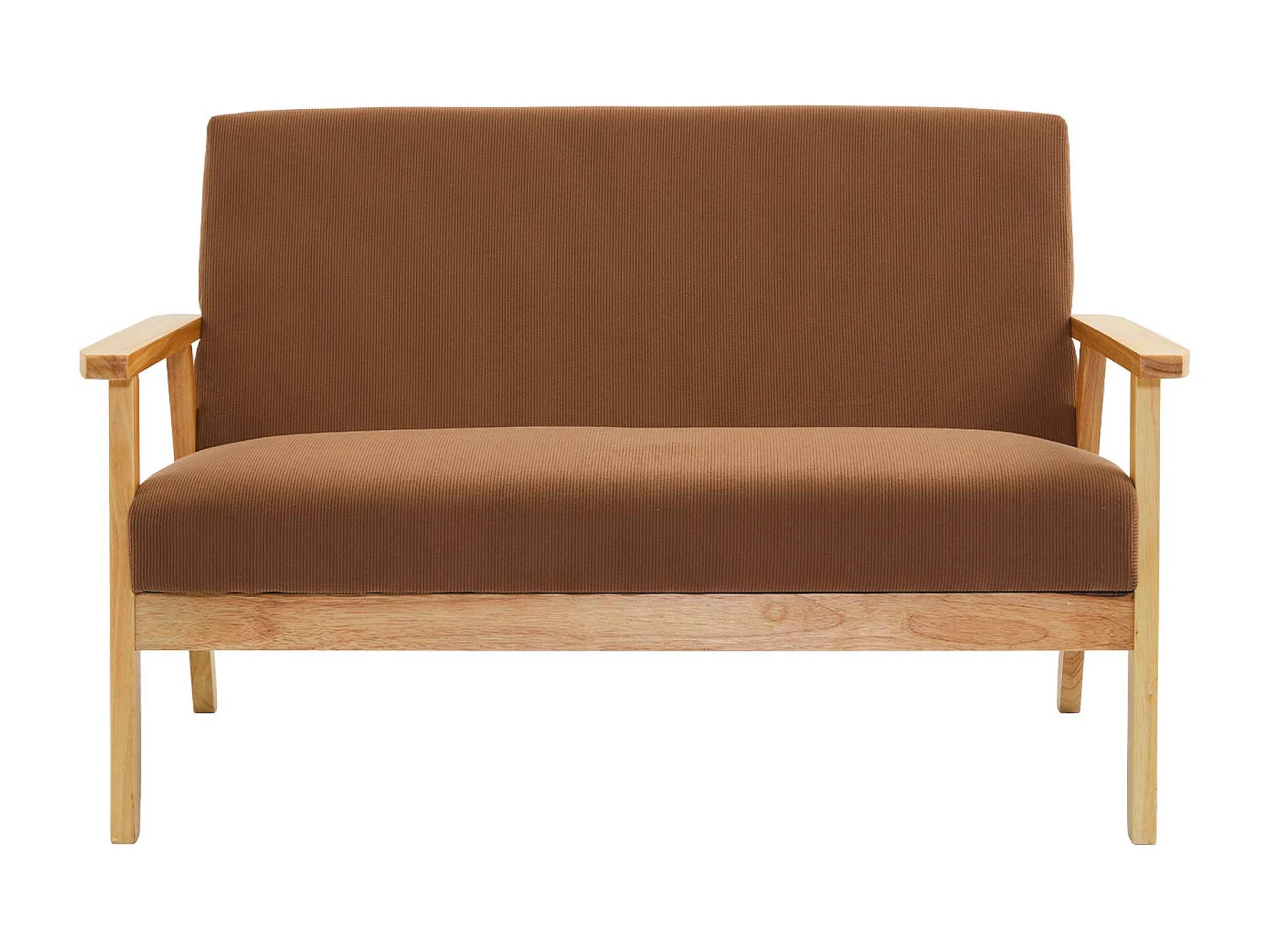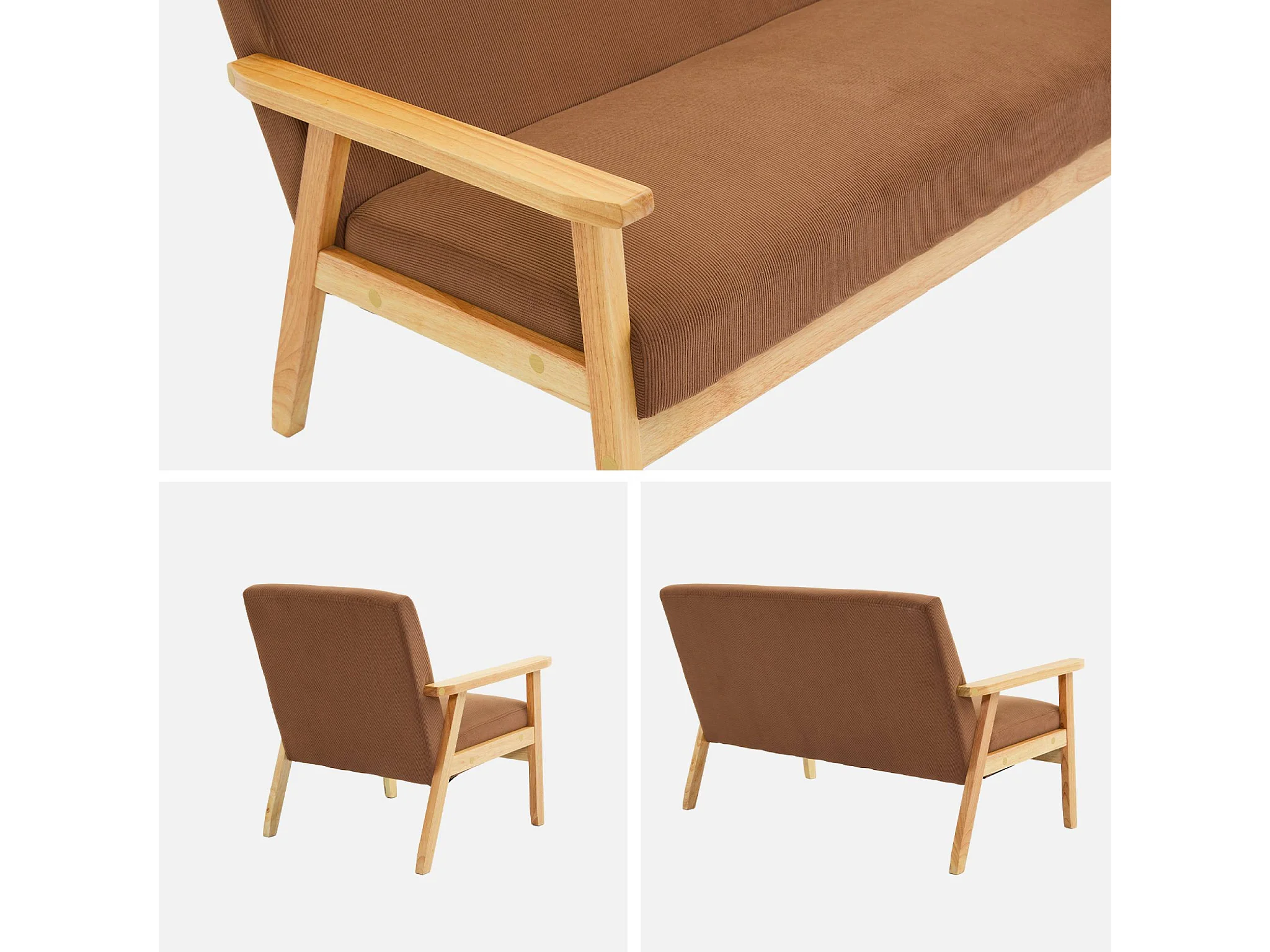Set divano 2 posti con panca e poltrona in velluto a coste, marrone