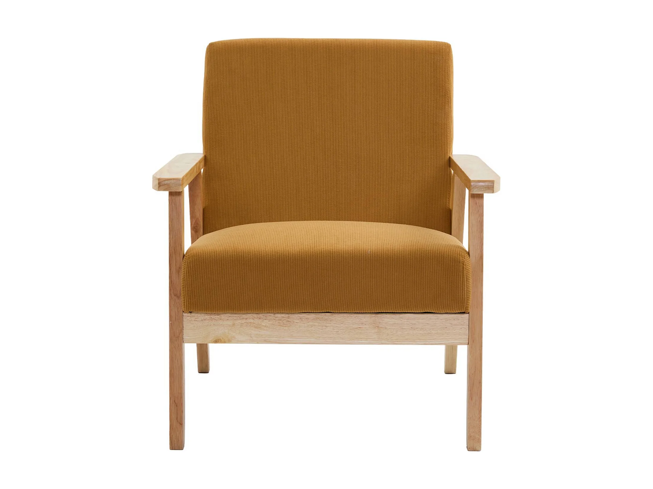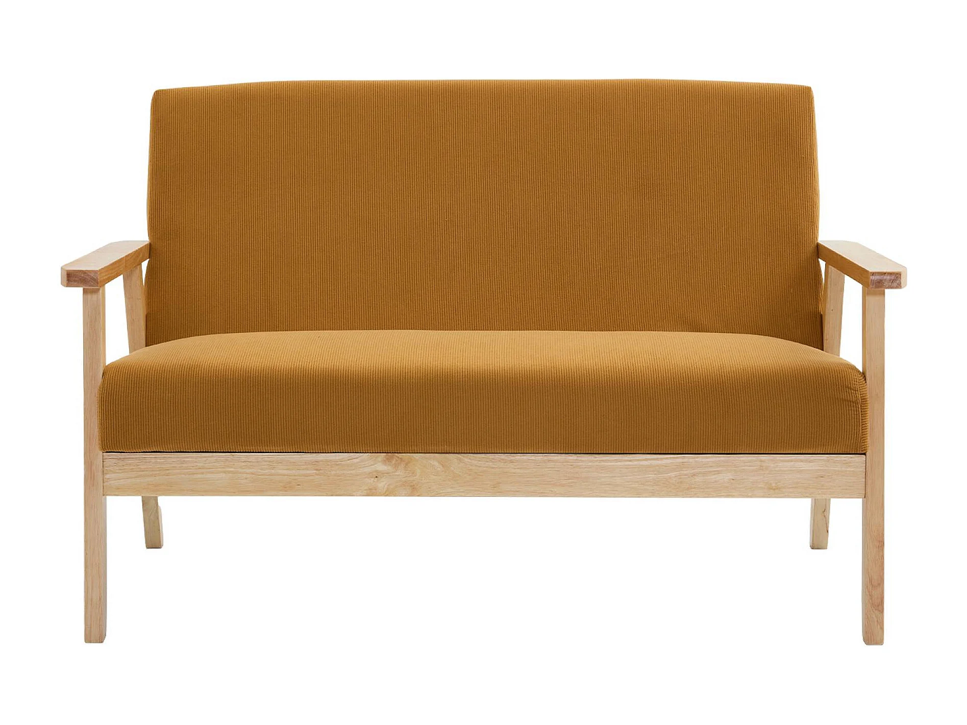 Set divano 2 posti con panca e poltrona in velluto a coste, mostarda