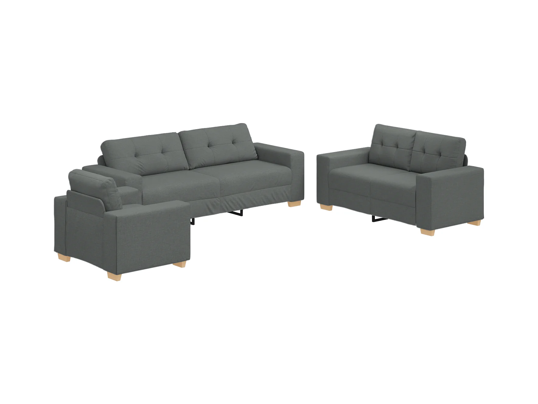 Set divano con cuscino 3 pezzi in tessuto grigio