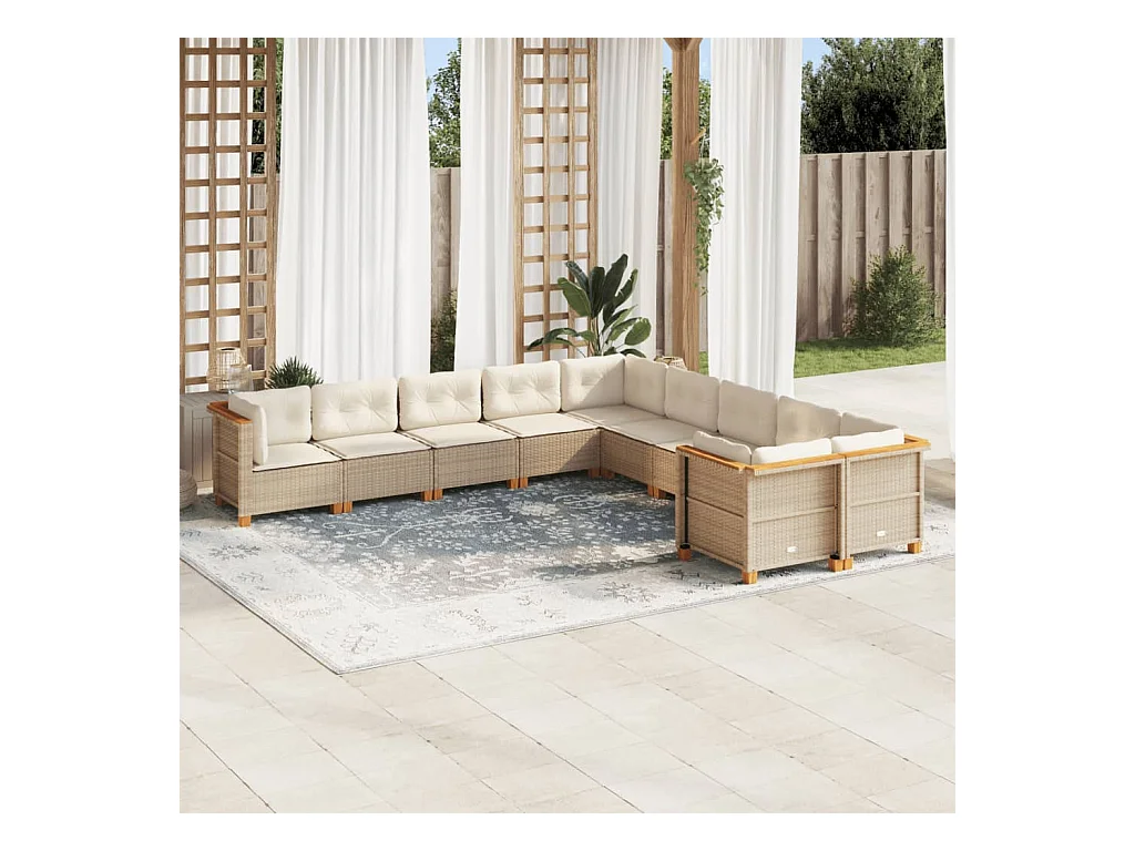 Set Divano da Giardino 10 pz con Cuscini Beige in Polyrattan