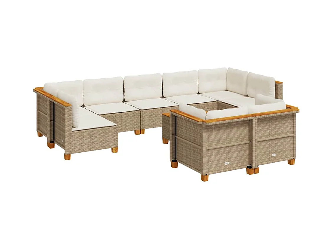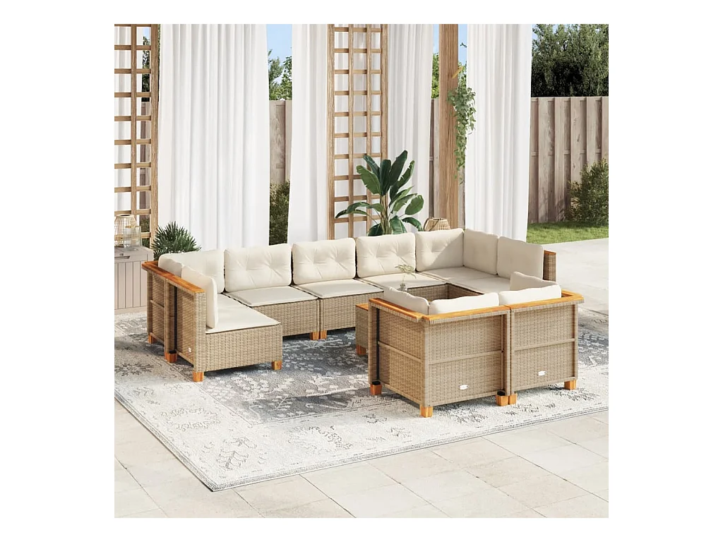 Set Divano da Giardino 10 pz con Cuscini Beige in Polyrattan