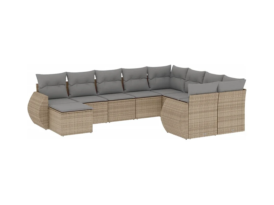 Mobile da giardino con cuscini 10 pz in resina intrecciata beige