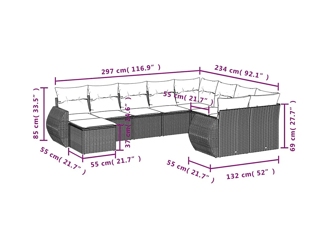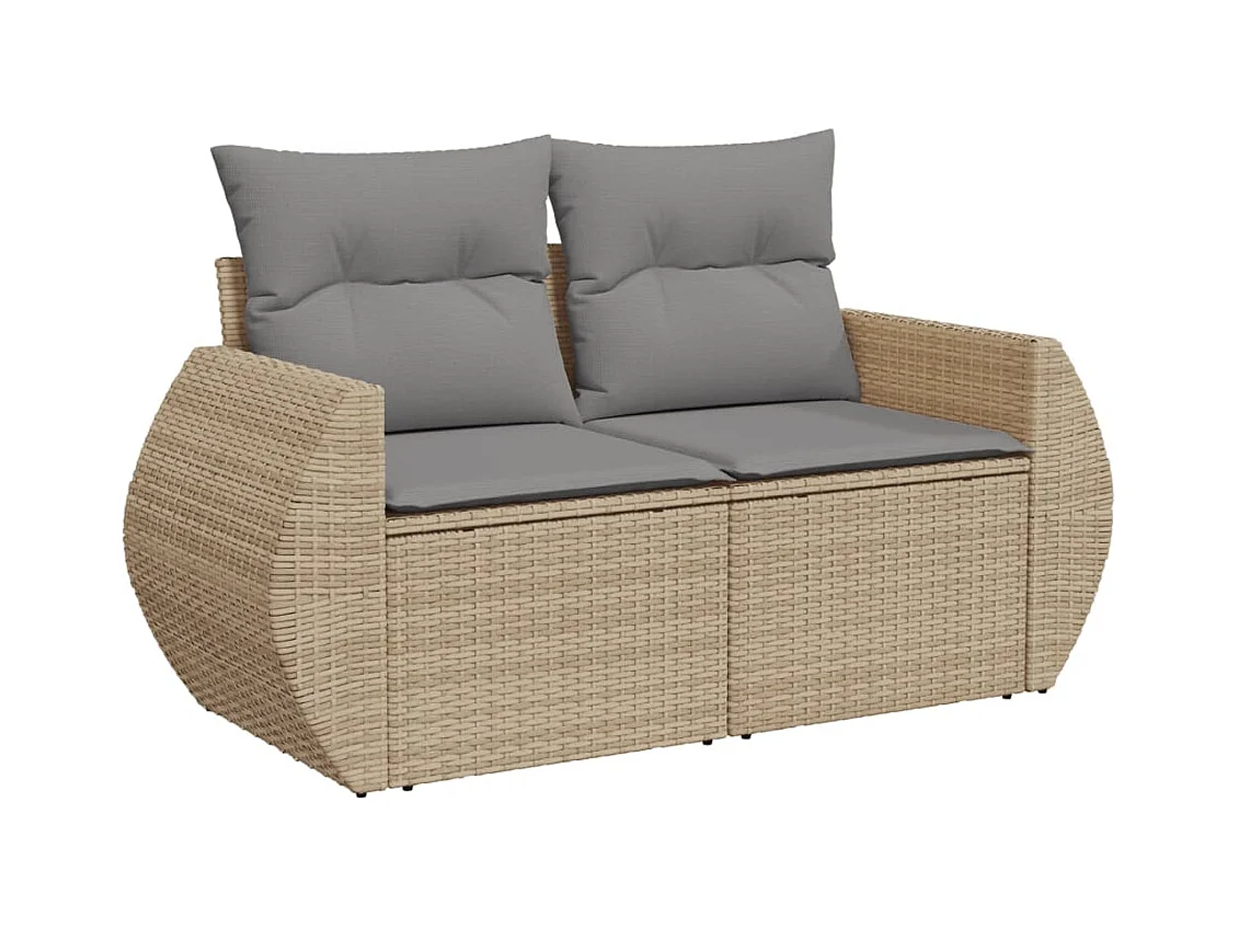 Mobile da giardino con cuscini 9 pz in resina intrecciata beige