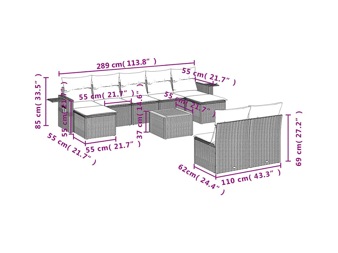 Mobile da giardino con cuscini 9 pz in resina intrecciata beige