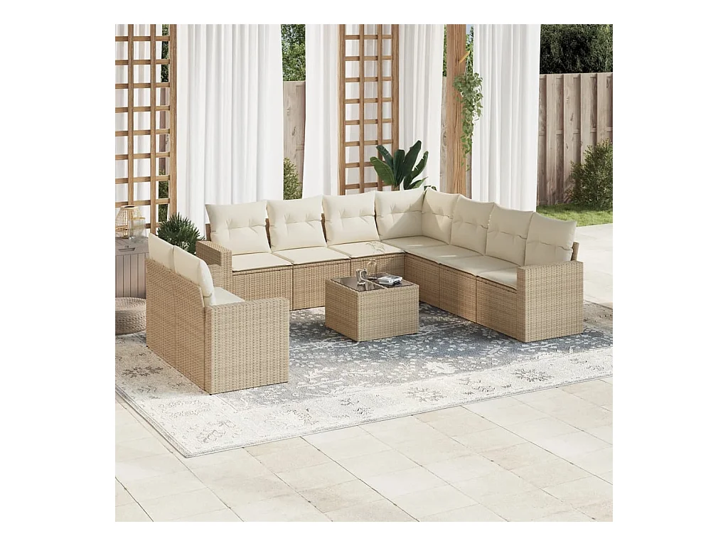 Set Divano da Giardino 10 pz con Cuscini Beige in Polyrattan