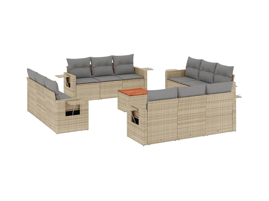 Mobile da giardino con cuscini 13 pz in resina intrecciata beige