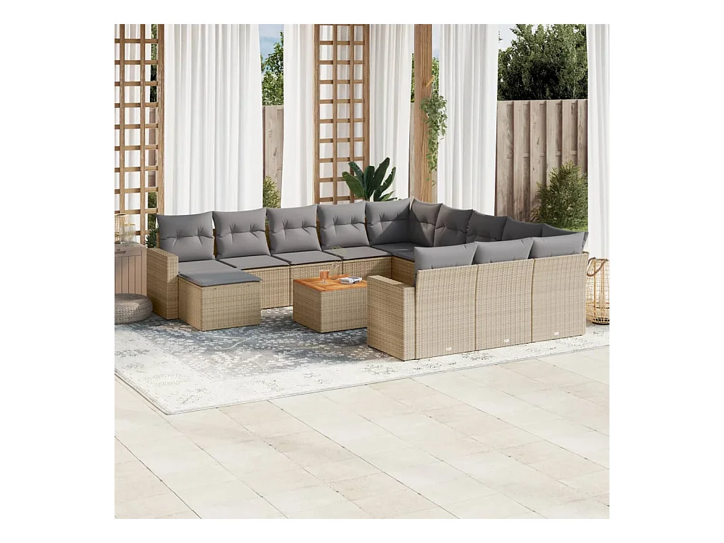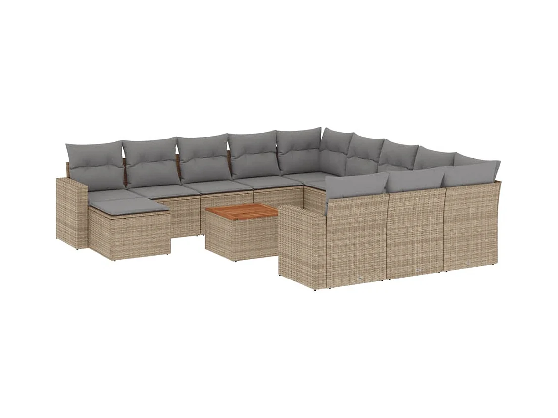 Mobile da giardino con cuscini 13 pz in resina intrecciata beige