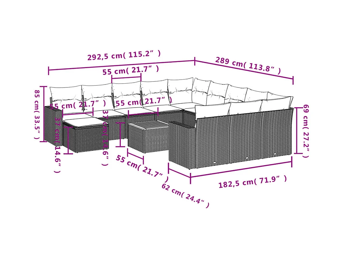 Mobile da giardino con cuscini 14 pz in resina intrecciata beige