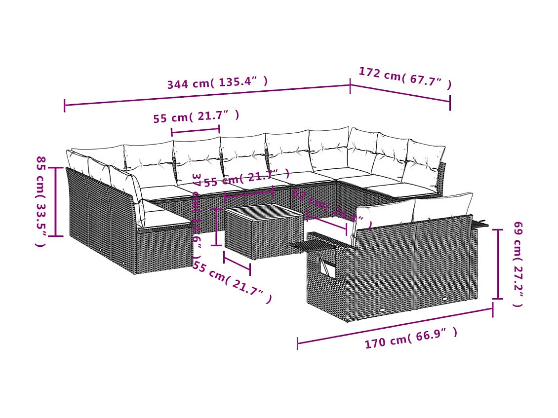 Set Divano da Giardino 12 pz con Cuscini Beige Misto Polyrattan