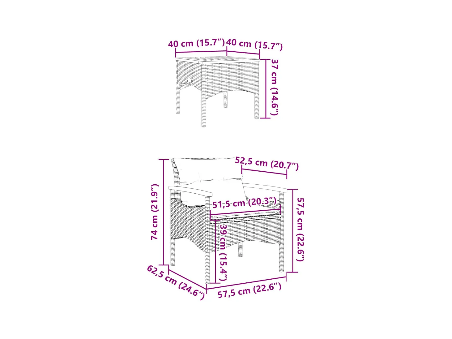 Set Divani da Giardino 3 pz con Cuscini Grigio in Polyrattan