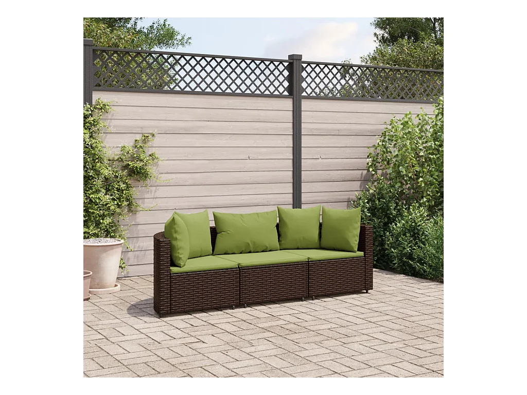 Set Divano da Giardino 3 pz con Cuscini Marrone in Polyrattan
