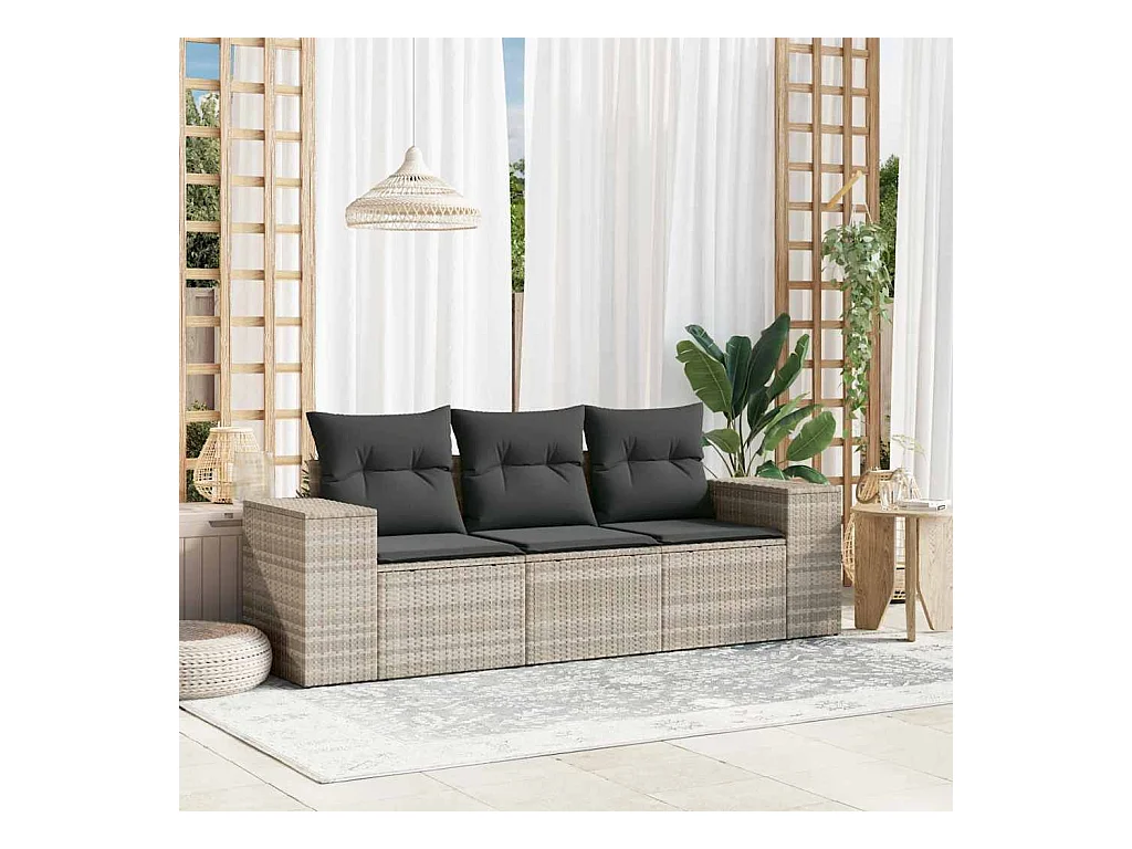 Mobile da giardino con cuscini 3 pezzi in resina intrecciata grigio chiaro