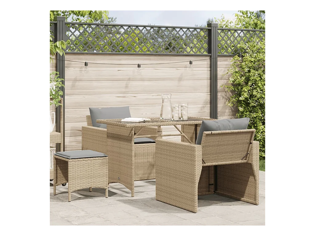 Set Pranzo da Giardino 5 pz con Cuscini Beige Polyrattan Acacia